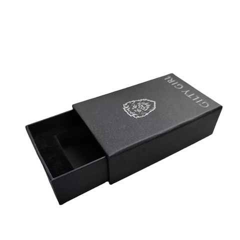 กล่องของขวัญลิ้นชักแบบเลื่อนได้ทำจากโฟมผ้ากำมะหยี่โลโก้ซิลค์สกรีนกระดาษสีดำแบบรีไซเคิลได้